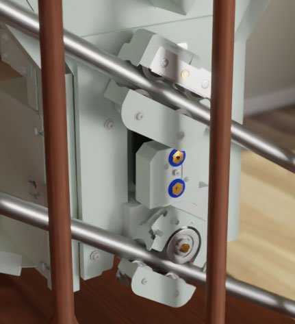 樓梯升降椅最大的壓力點在滾輪與導軌的接觸處 —— 結構強度在此面臨最嚴峻的考驗。因此,我們的系統採用實心不鏽鋼滾輪與導軌,而非塑膠滾輪或中空的鋁、鐵導軌。