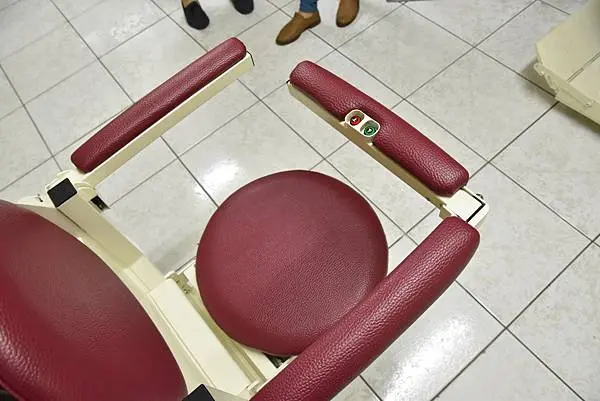 騰城樓梯升降椅的底座除了作為電池所在位置之外,也整合了電源開關與速度控制按鈕,操作十分直覺。為了避免電池沒電而無法使用,底座還設計了臨時充電裝置,使用者可以快速充電,隨時保持升降椅運作順暢。