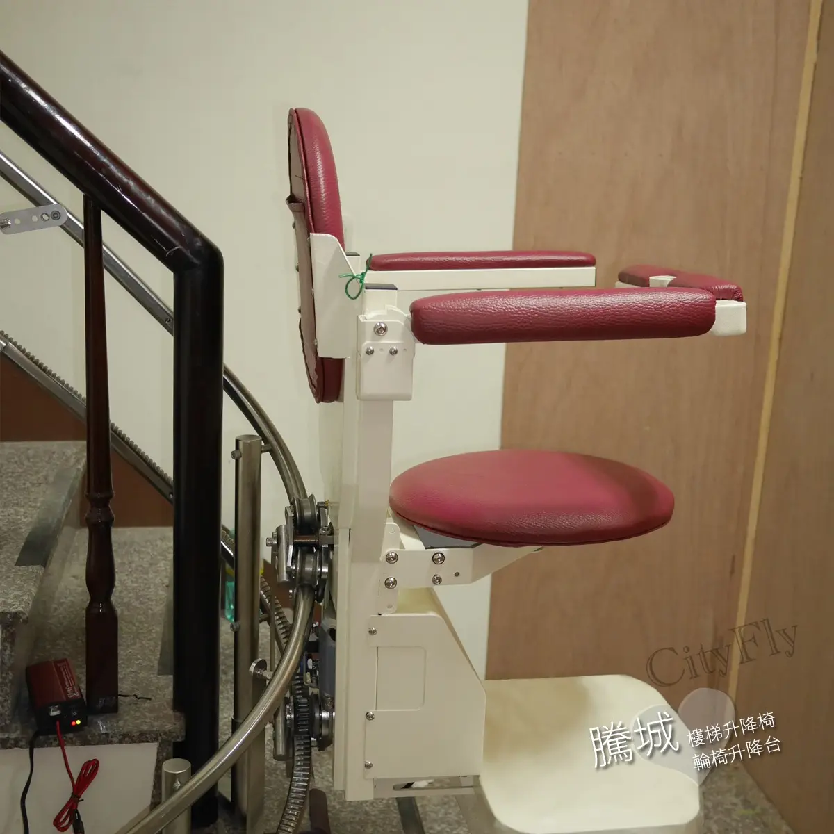 騰城升降椅創辦人是一位具有多年經驗的機械工程師,創業契機源自中風行動不便的母親,他親自研發出一套「無需拆建住家結構」的騰城升降椅系統,整套系統含主機、椅子、柱腳、柱子、軌道,全部採用304不鏽鋼製造,能夠應對台灣潮濕高溫的環境,不容易生鏽跟故障,是一款真正能提供行動不便者上下樓的優質輔具。