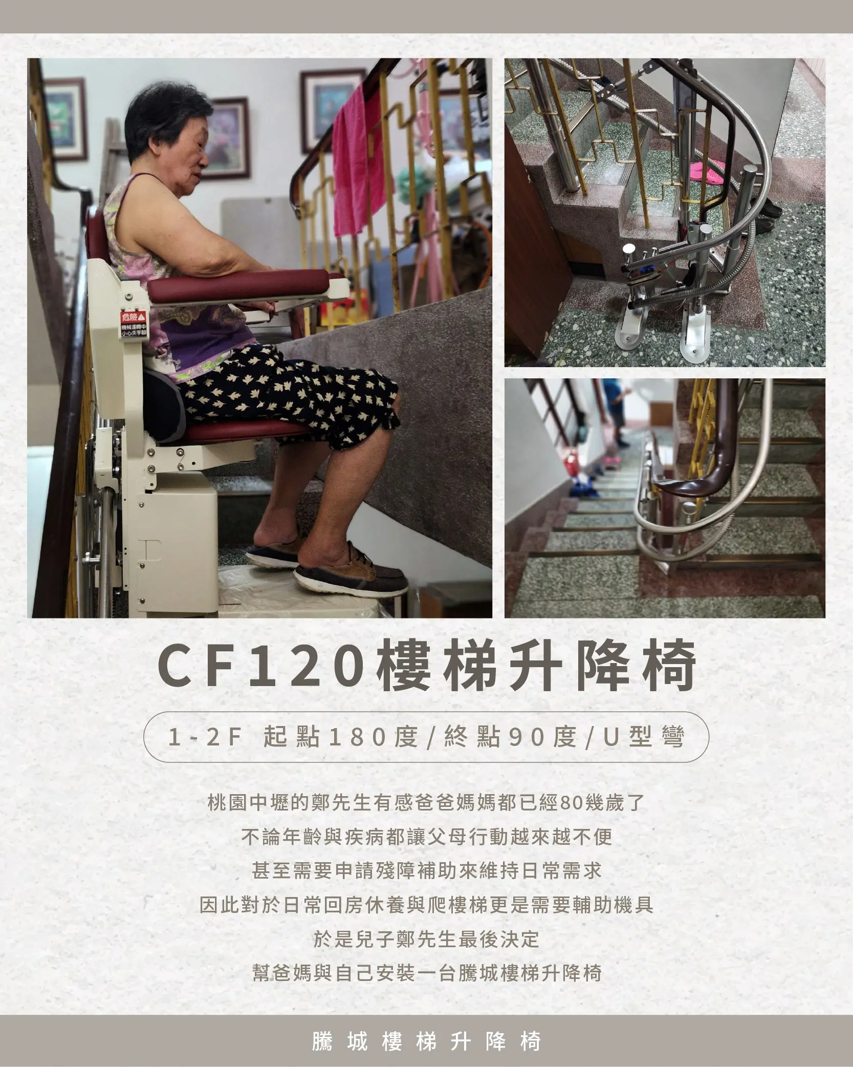 於是,他決定為父母安裝一台 騰城 CF120 樓梯升降椅,