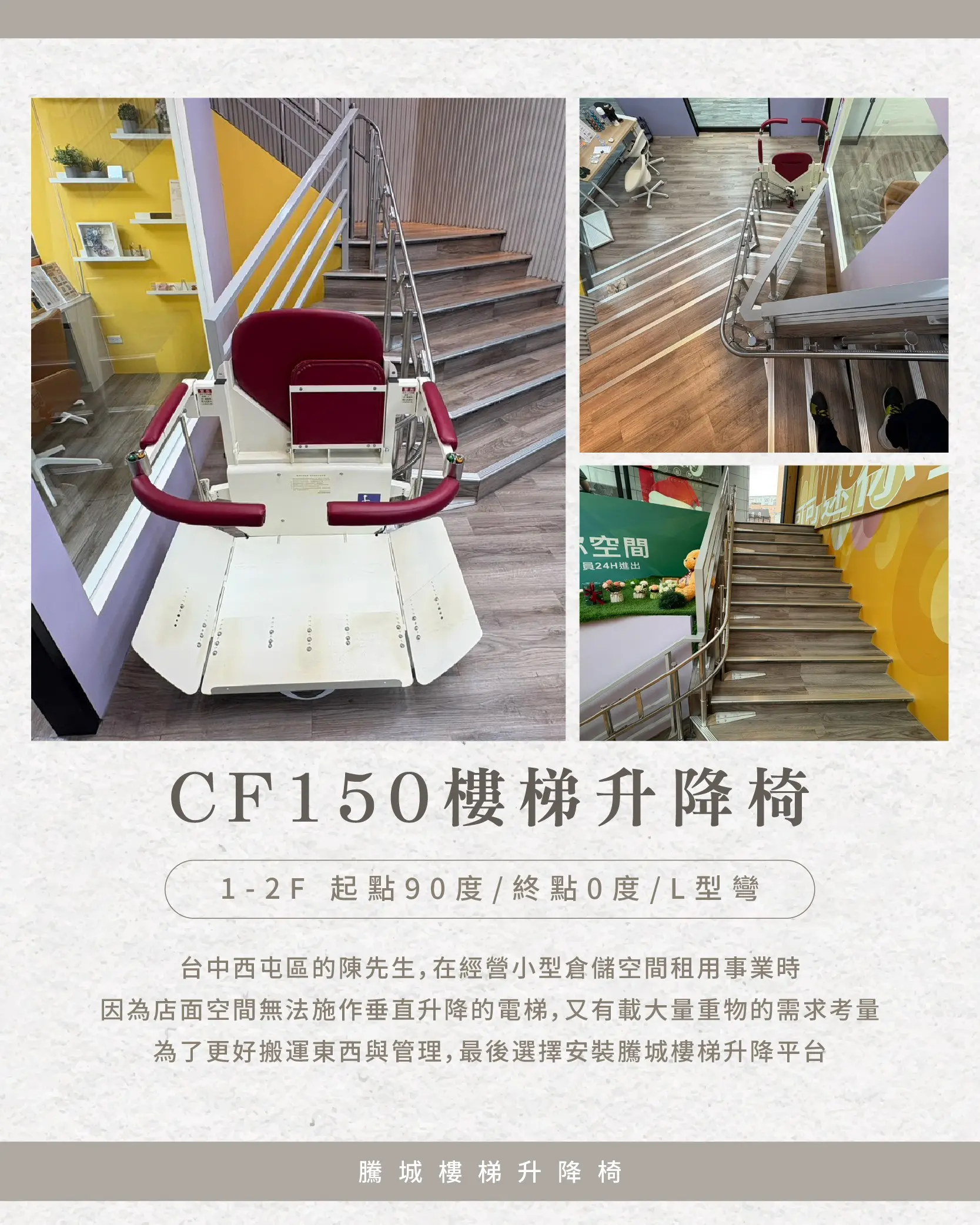 Mr. Chen, who operates a small storage space in Xitun, Taichung, originally had to run back and forth between floors to transport items, but was left with no solution due to the inability to install an elevator in the premises.