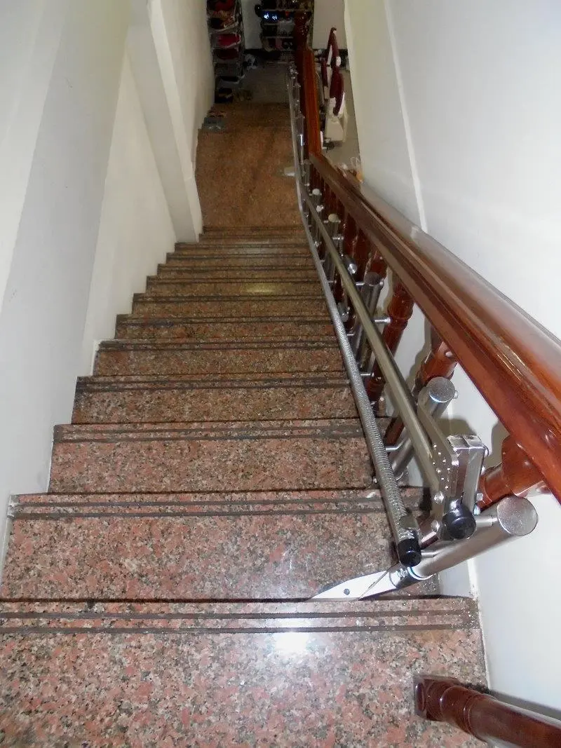 - 180° Start Point: Installed on the side of the staircase for easy, space-saving storage. The dual rails are slim and elegant, crafted from our exclusive solid stainless steel. This ensures safe, worry-free use while keeping the rail close to the handrail—leaving more walking space for your loved ones!