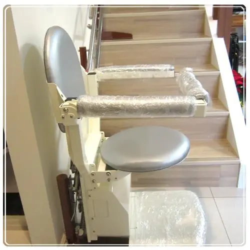 - This installation features a silver sofa-style stair lift seat. Standard sofa-style seats are usually available in deep red or brown, but custom leather colors can also be made for a unique and personalized look. The entire system is constructed with a stainless steel body, and the rack-and-gear integrated rail is also made of stainless steel. Unlike painted carbon steel, which requires protection against scratches and paint peeling, all-stainless-steel construction eliminates these concerns.