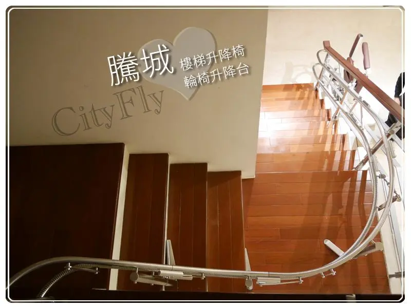- An elegant wooden staircase space equipped with a practical and durable stainless steel stair lift, creating a barrier-free living environment.