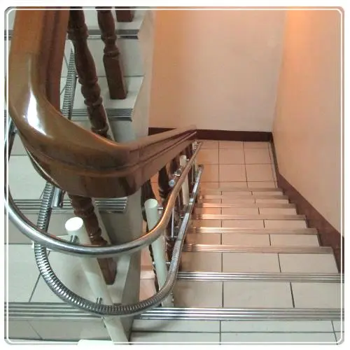 In addition to our proprietary technique of cutting the gear rack directly into the solid stainless steel rail, the stair lift features a structurally engineered, sturdy column base, an exclusive fully enclosed handrail design, a safety mechanism that prevents operation unless the handrail is properly positioned, and anti-collision stops on both sides—ensuring maximum safety and peace of mind for family members during use.