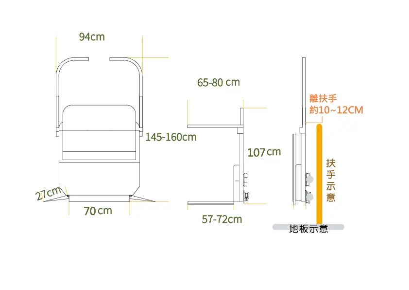 | 平台寬度 | 70 cm + 27cm 側翼 |